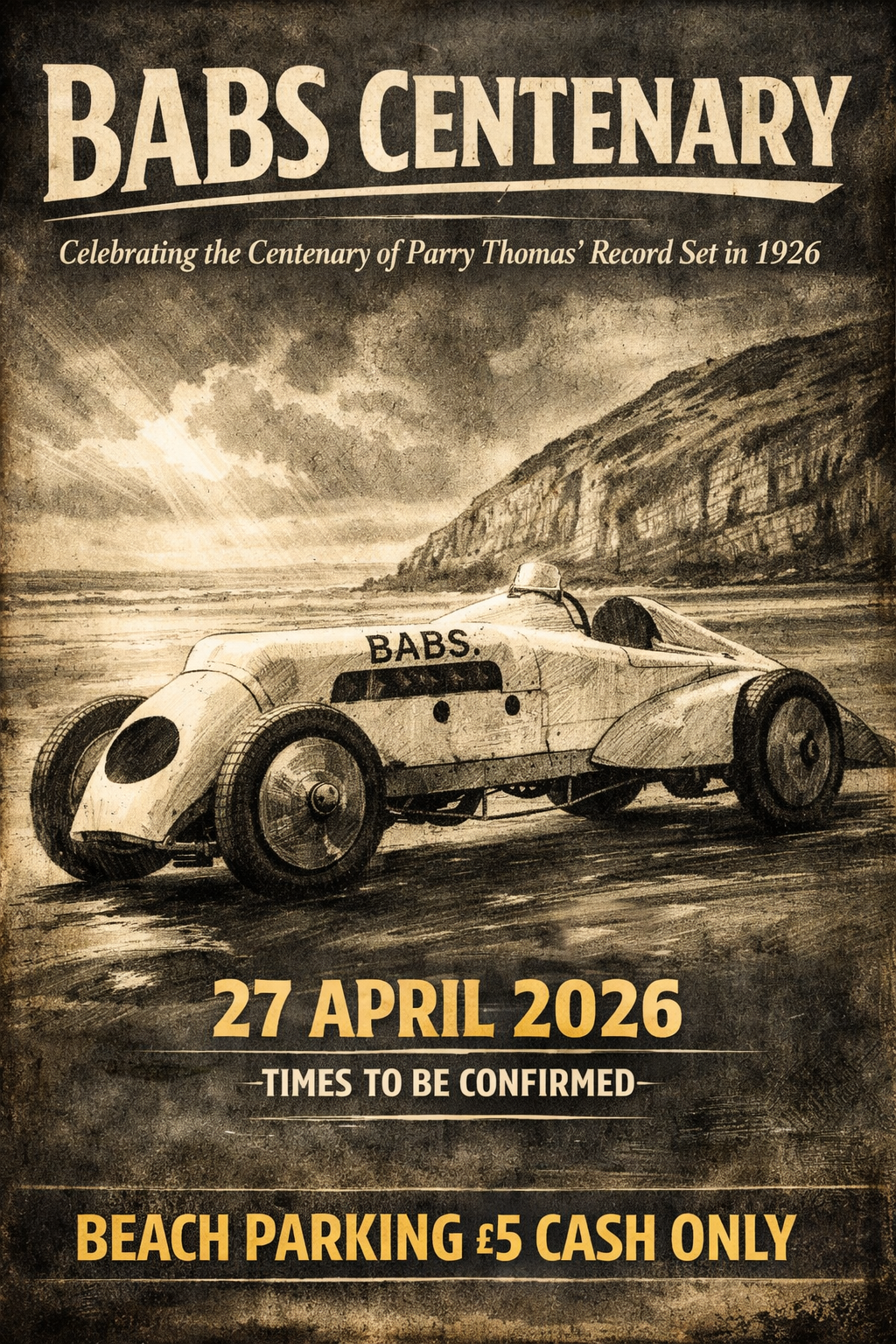 Babs will return to Pendine Sands on 27 April 2026 to mark the centenary of Sir J.G. Parry-Thomas’ world land speed record, set here on the sands in 1926.